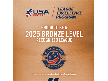 • Dedication to our athletes’ football experience is our number one priority. We’ve taken action to prove our commitment by becoming a USA Football BRONZE Level Recognized League.